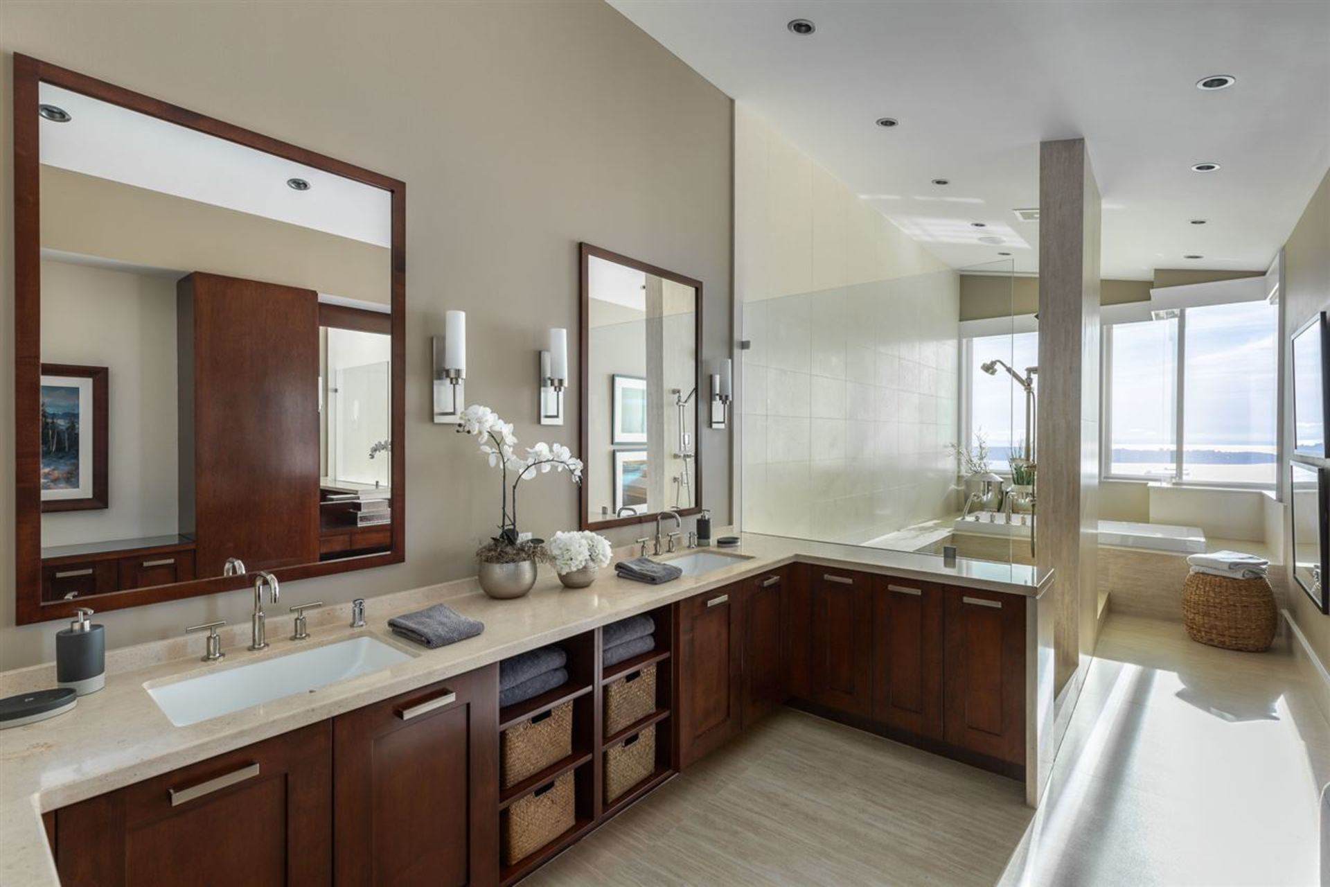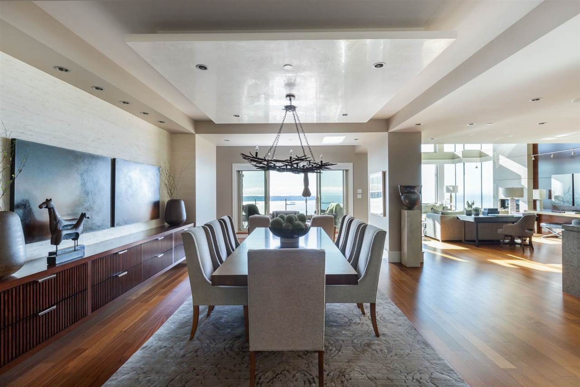 WORLD CLASS PENTHOUSE in AERIE II - this penthouse is one of eight executive residents built in concrete and stone by British Pacific Properties. This spectacular top floor end unit is an expansive 4,100+ sf in a one level open plan with a private elevator to your enclosed double car garage. The incredible living room features 16’ ceiling and floor to ceiling windows overlooking stunning ocean and city views. Large Dining room, state of the art kitchen with 16’ granite island for gourmet entertaining, sumptuous master suite with views and two additional ensuite bedrooms, private office plus an open den all on one floor! Private covered terraces off all principal rooms, geothermal radiant heating + air conditioning, rain water recycling for exterior irrigation ….absolutely fabulous!